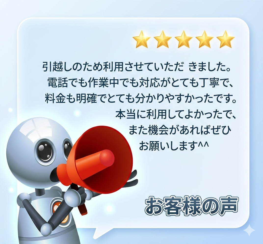 今回は、先日市川市で引越しに伴う不用品回収をご利用いただいたお客様から、とても嬉しい「お客様の声」📥を頂きましたのでご紹介します。スタッフ一同、大変励みになりました!